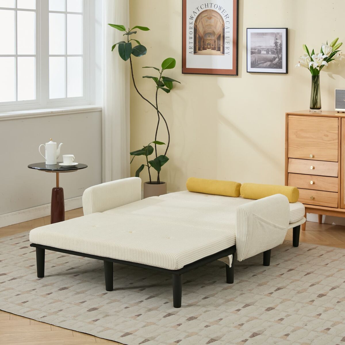 - Sofá loveseat de 2 plazas en color ivory, versátil para salón, como daybed o sillón relax con espacio de almacenamiento.