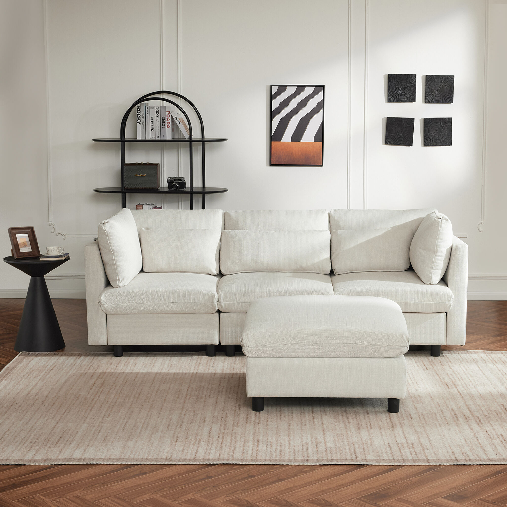 Dimensiones del producto: Sofá 220*83*81 cm;reposapiés 74*74*45 cm