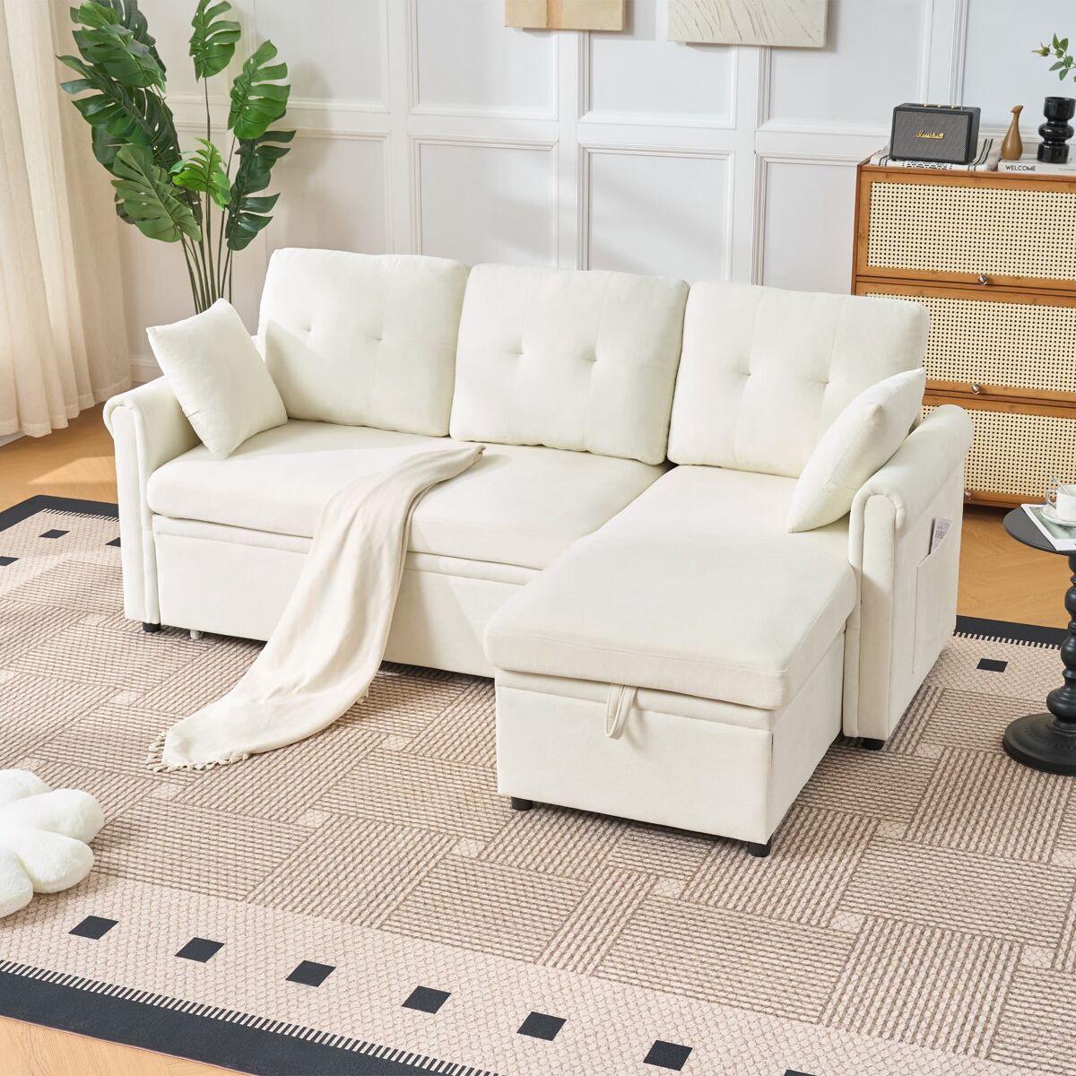 - Sofá esquinero 3 plazas multifuncional con función cama, ideal para sala de estar o habitación de invitados.