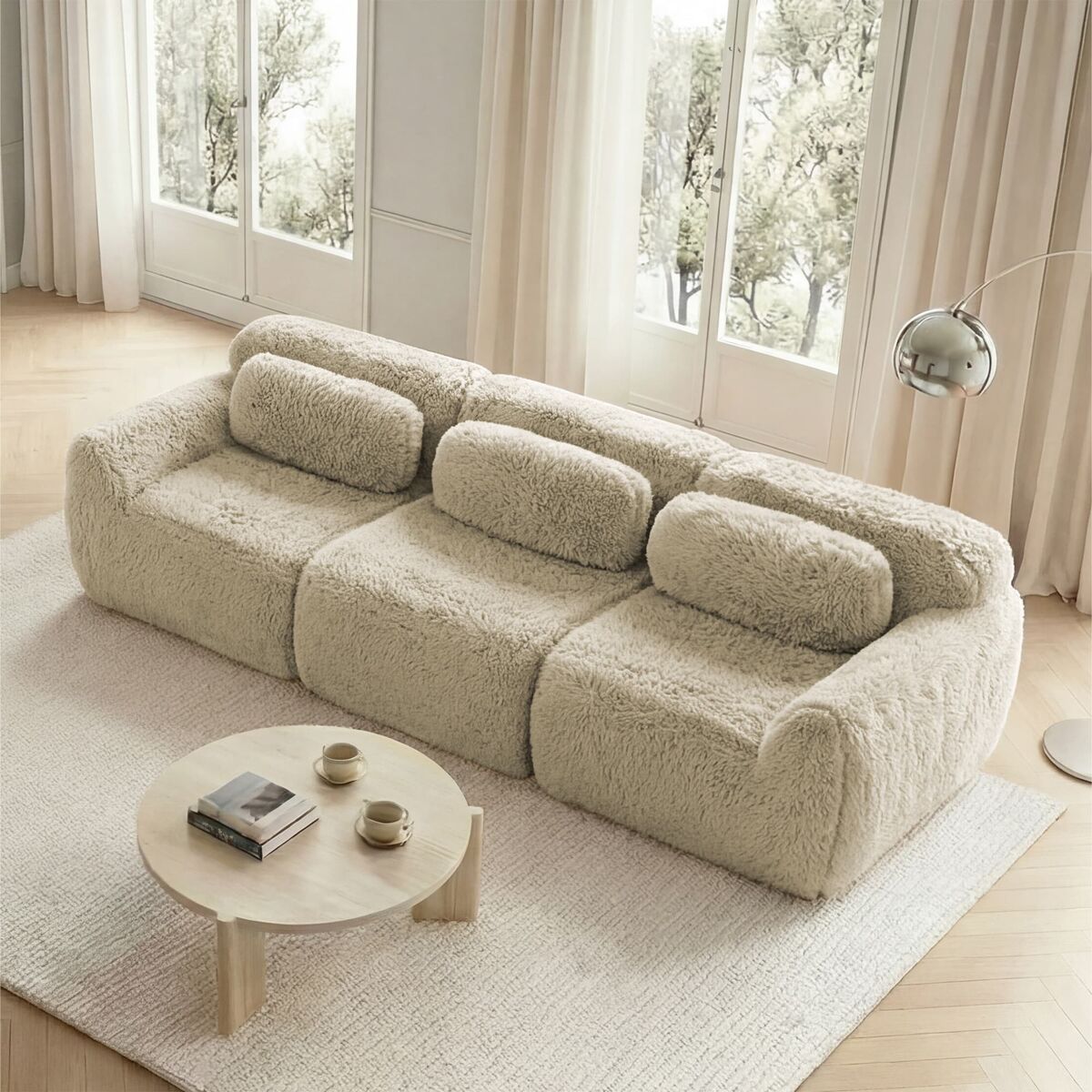 - Sofá de 3 plazas de felpa premium, modular y cómodo, ideal para salón.
