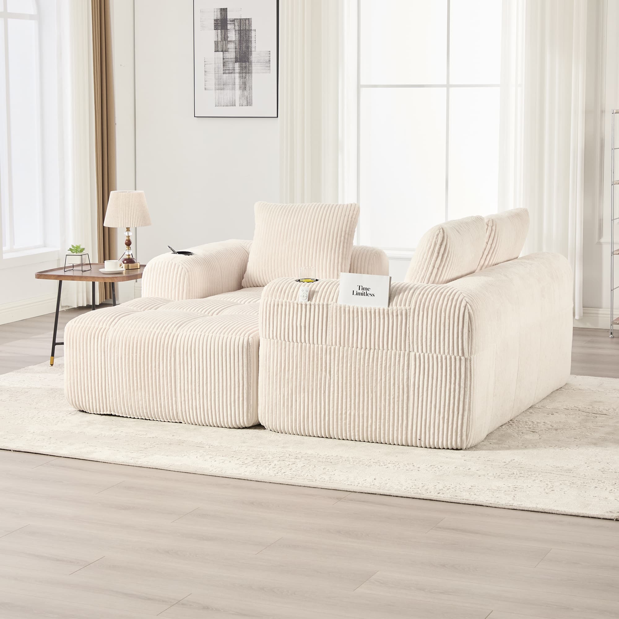 - El material de corduroy es fácil de limpiar; se recomienda aspirar regularmente y limpiar las manchas con un paño húmedo.