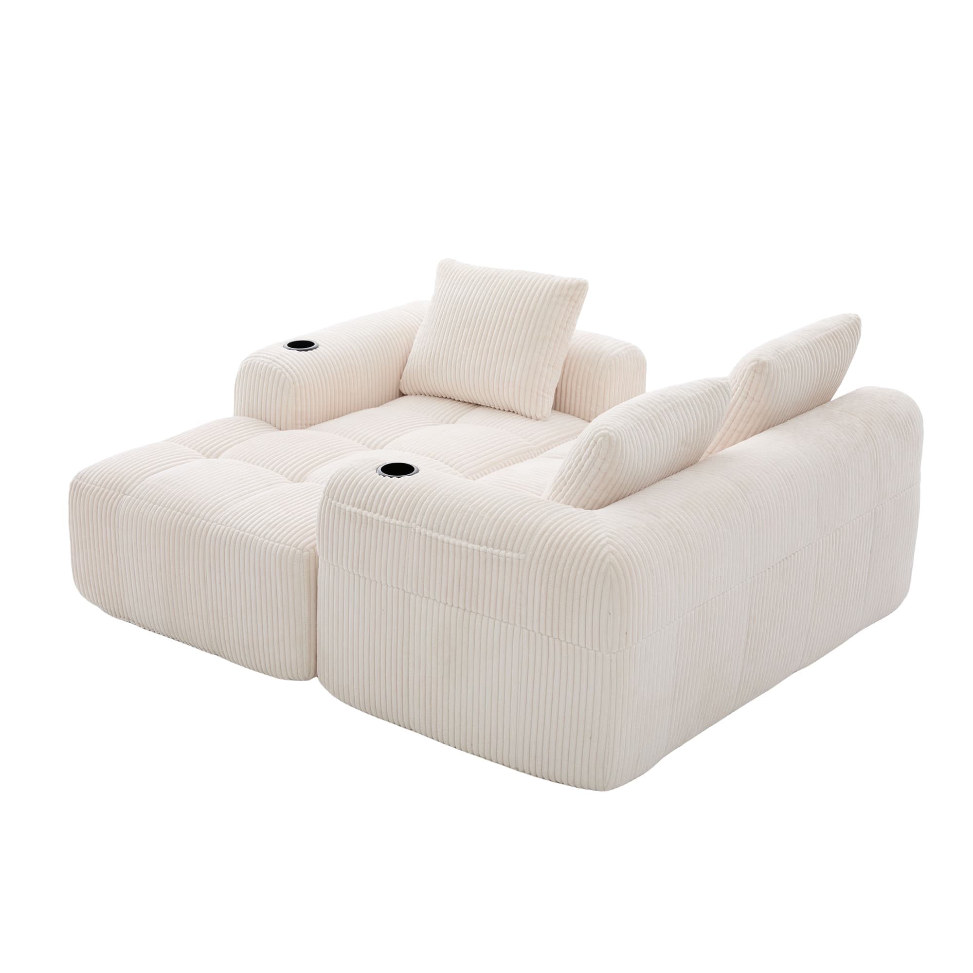 - Viene con portavasos integrados, perfectos para evitar derrames durante las noches de cine o descansos.