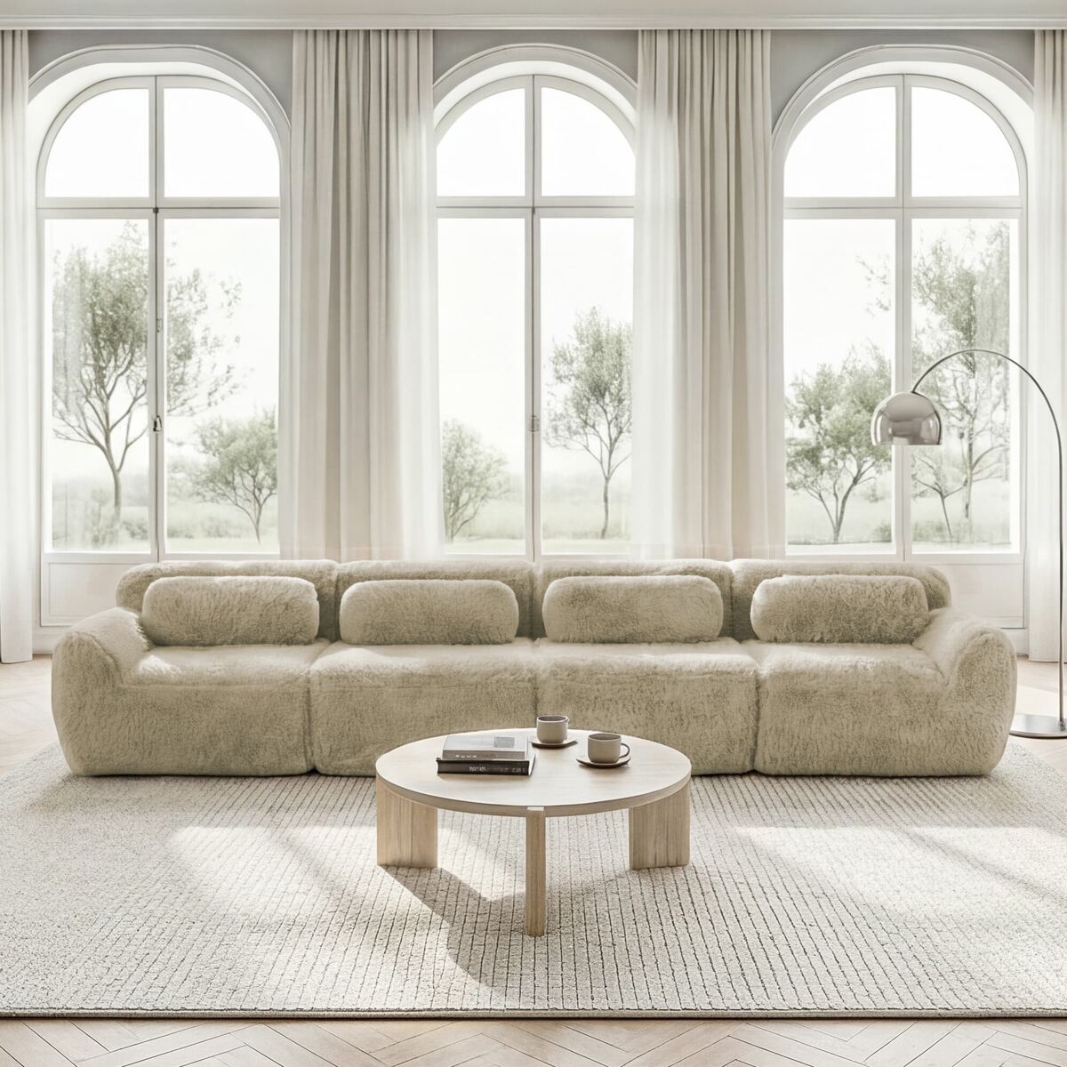 - Sofá modular de 4 plazas en tejido de felpa premium, ultra suave y cómodo, ideal para largas sesiones de descanso.