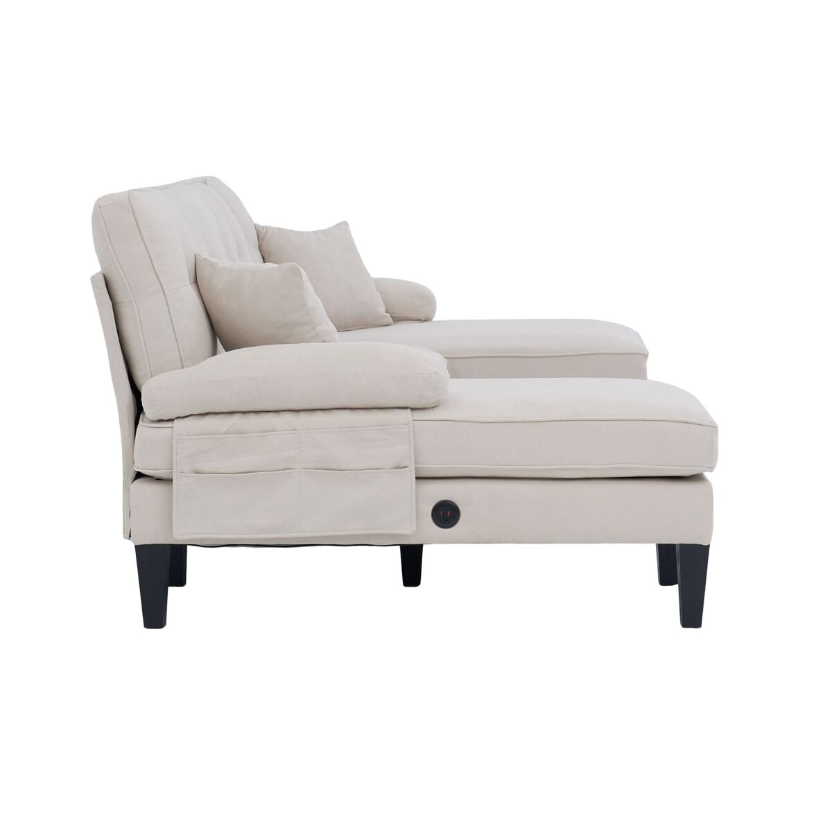 - Bolsillos laterales de almacenamiento y puertos USB/Type-C integrados para cargar dispositivos fácilmente.