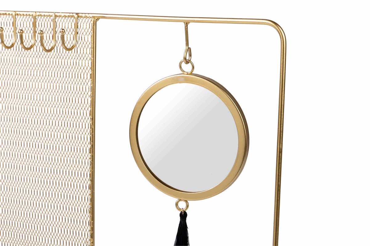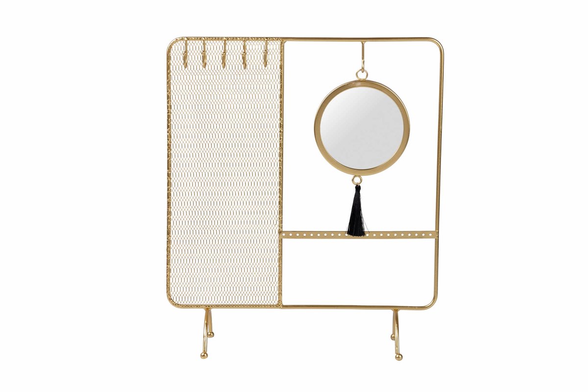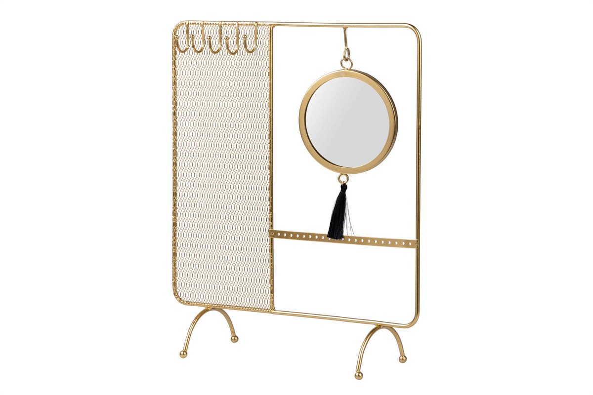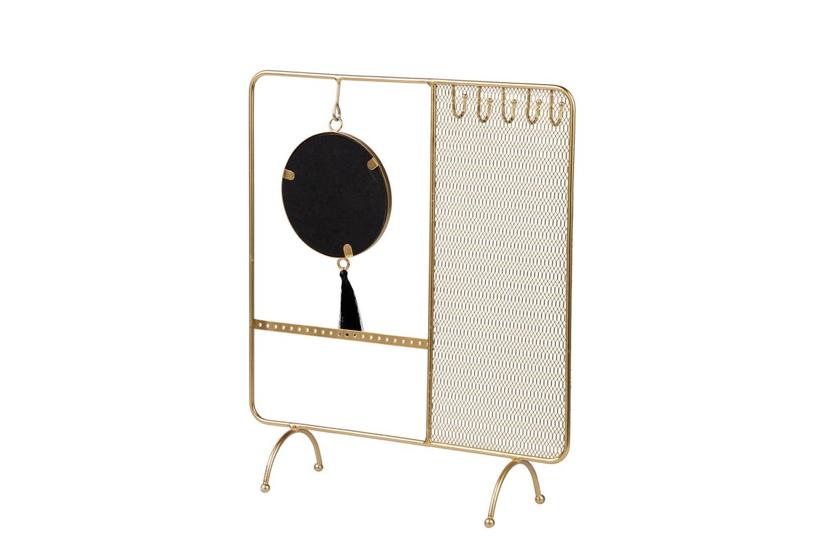 El Soporte Joyero Metal 35x12x41 Cm es una solución elegante y funcional para almacenar y proteger tus joyas y accesorios favoritos. Estos objetos de almacenamiento están diseñados para organizar y mantener tus joyas seguras y accesibles, evitando enredos, daños y pérdidas. Dispone de varios compartimentos y cajones para guardar diferentes tipos de joyas, fabricado con materiales de alta calidad, está diseñados para durar. Tiene un diseño elegante y sofisticado que los hace una pieza decorativa por sí solos. Ya sea que necesites un joyero para tu hogar o negocio, este objeto de almacenamiento es la elección perfecta para mantener tus joyas organizadas, protegidas y accesibles. Con su estilo elegante y su funcionalidad, esta pieza es una inversión valiosa para cualquier persona que aprecie la belleza y el valor de las joyas.