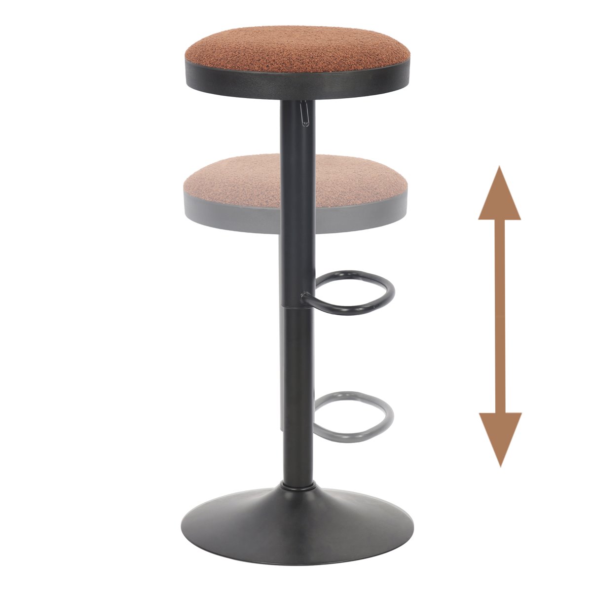 Taburete ajustable FINN. Taburete giratorio regulable en altura mediante elevador de gas. Su pié, reposapiés y base de 38,5 cm de diámetro metálica con recubrimiento de polvo negro nos facilitan adoptar una buena postura corporal. Asiento de tablero de madera contrachapada acolchado con espuma regular y tapizado con tela. El taburete FINN es perfecto para mesas altas y barras. Déjate sorprender con el taburete ajustable FINN con su diseño moderno y contemporáneo.