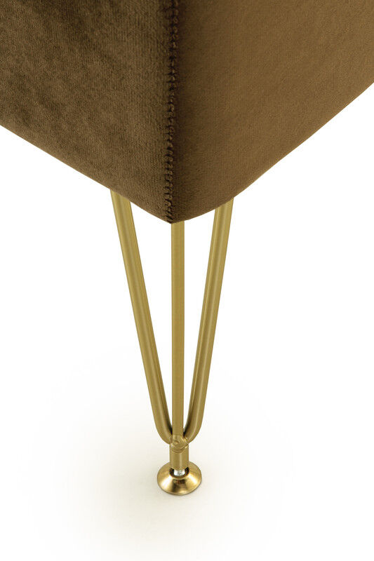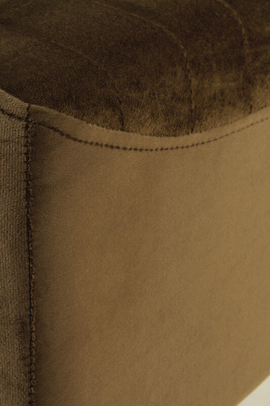Con su forma rectangular, el puf Aldine, con su tapizado de terciopelo marrón y sus patas de metal dorado, no pasará desapercibido en la habitación donde lo coloque.