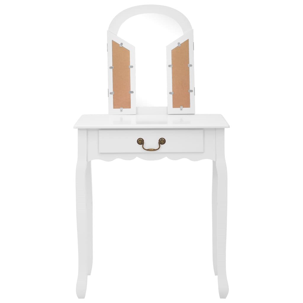 Nuestro tocador de lujo con taburete es el lugar perfecto para maquillarse por la mañana y prepararse para el día siguiente. También cuenta con una fantástica capacidad de almacenamiento para tus joyas y artículos de belleza. Este tocador, con un espejo ovalado y un taburete, es un verdadero punto destacado para cualquier dormitorio. El cajón ofrece mucho espacio para guardar los artículos cosméticos que necesitas todos los días de forma ordenada. El taburete con acolchado grueso te permite sentarte cómodamente mientras te peinas. Cuando no esté en uso, este taburete se puede guardar debajo de la mesa para ahorrar espacio. Además, esta mesa es duradera y de fácil mantenimiento.