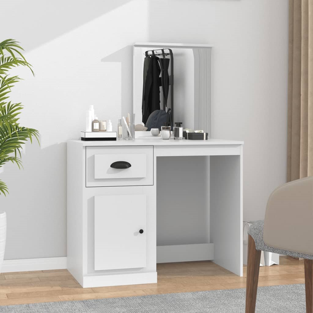 Con unas líneas rectas y elegantes y una forma asimétrica repleta de originalidad, ¡este tocador atraerá todas las miradas, sin duda! Material duradero: La madera contrachapada tiene una calidad excepcional, con una superficie lisa y también cuenta con fuerza, estabilidad y resistencia a la humedad.Espejo de tocador: La mesa tocador con espejo es perfecta para tu rutina diaria de belleza. ¡El espejo te permite cuidar la piel y maquillarte!Amplio espacio de almacenaje: La mesa tocador ofrece un amplio espacio para acceder fácilmente al maquillaje, las joyas y las cosas básicas del día a día. Información útil:Para facilitar al máximo el montaje, cada producto se entrega con un manual. Advertencia: Para evitar que vuelque, este producto debe usarse con el dispositivo de fijación a la pared incluido.