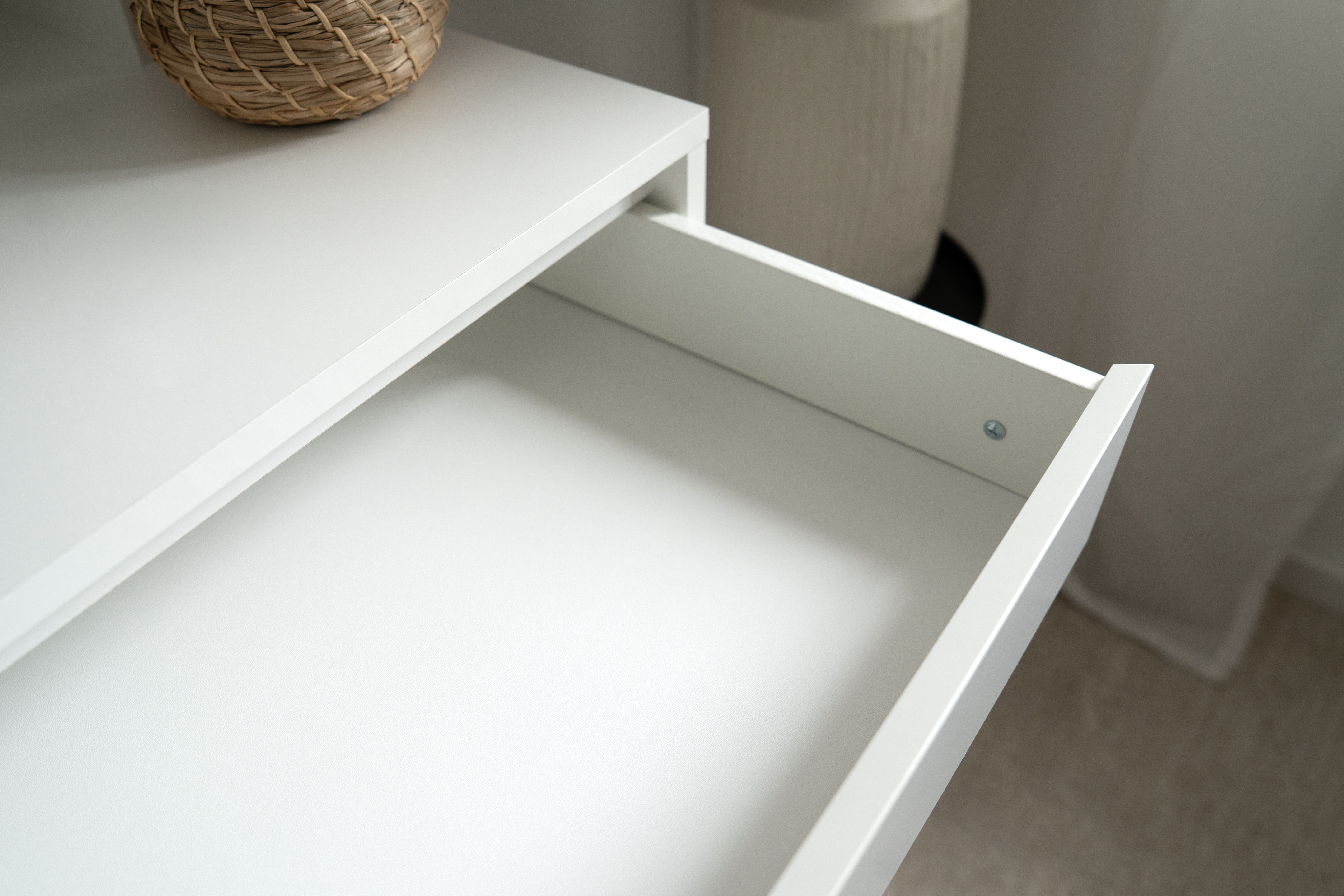 Tocador con espejo y un cajón.