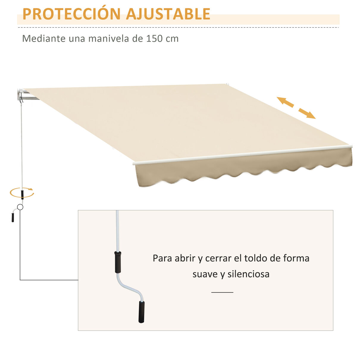 - 1 x Manual de instrucciones¿Quieres tener sombra en tu terraza o jardín? Este toldo retráctil exterior es ideal para proporcionar sombra en el espacio que desees. Su brazo articulado permite abrirlo y cerrarlo fácilmente según necesites en cada momento. El marco es de aluminio y metal, muy resistente y apto para exterior. La tela de poliéster es resistente al agua y a los rayos UV. Este toldo proporcionará un lugar agradable y fresco protegiéndote del sol.