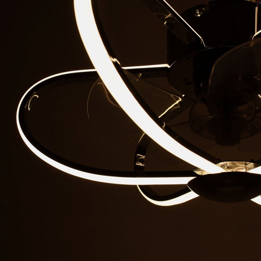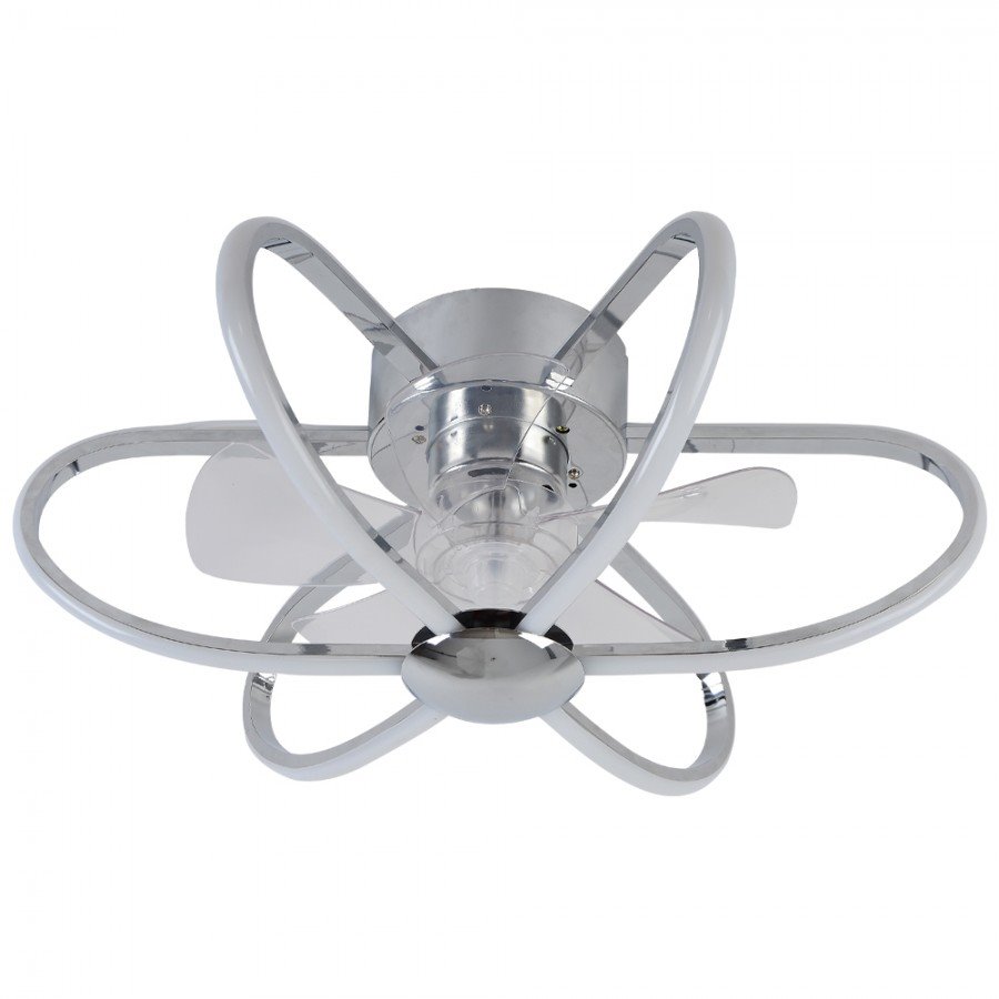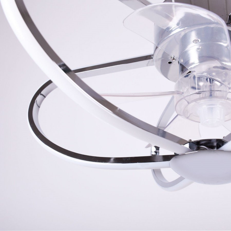 Ventilador JURA en color Cromo con luz, 5 aspas en color transparente y motor AC con 3 velocidades.Mando a distancia incluido, temporizador 2h, función de memória, control de aire para verano, APP para teléfono, intensidad y color de luz regulable (3000-6500K). Tiene una medida de 23x53 centímetros.Tecnología LED integrado con una potencia de 74 watios, 5260 lúmenesLED IntegradoColor : CromoFormato :5 aspasDiámetro :53 cmAltura :23 cmPotencia máxima :74WCantidad de luz :5260 lmÍndice de protección:IP20Material :Aluminio + Acrilonitrilo Butadieno Estireno (ABS)Mando:SíVentilador JURA con luz, 5 aspas y motor AC con 3 velocidades.Este modelo incluye- mando a distancia,- modo Verano,- función de memoria,- temporizador 2h (mando) y 1/2/3/4/5/6/7h (APP),- aplicación movil (APP) Smart Elfin,- intensidad de la luz regulable,- temperatura de luz ajustable.Tecnología LED integrado con una potencia de 74 wattios, 5260 lúmenes y color de luz regulable 3000-6500K.Tiene una medida de Al.23xD.53cmEl flujo de aire descendente crea un efecto de enfriamiento del viento para un mayor ahorro de energía.Si necesita mas informacion sobre este producto no dude en contactar con nosotros y estaremos encantados de atenderle