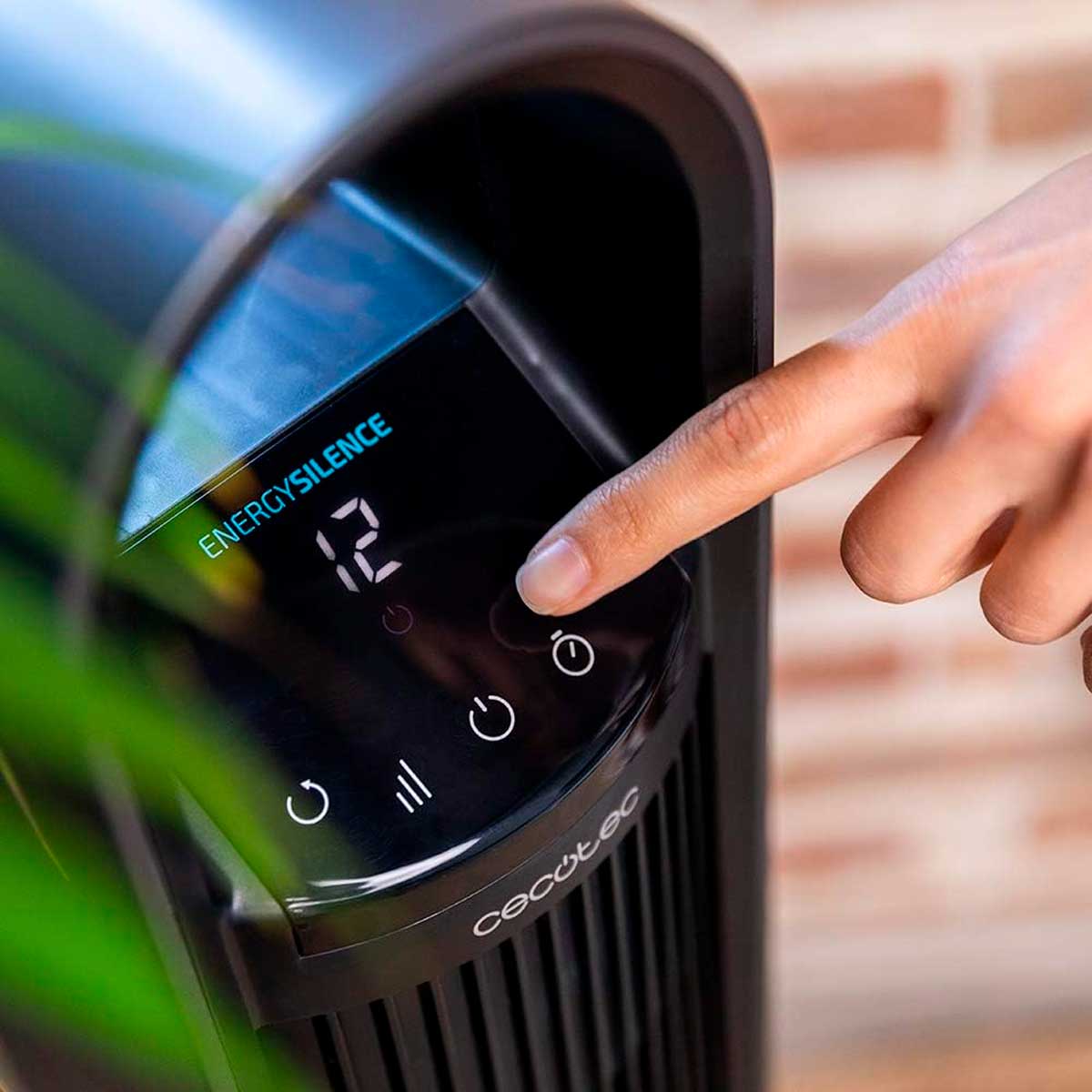 El ventilador de torre EnergySilence 9190 SkyLine Ionic Connected de Cecotec ofrece una solución completa para la ventilación y purificación del aire en tu hogar. Con una potencia de 60W, este ventilador garantiza una ventilación instantánea y eficaz en cualquier estancia. Su motor de cobre no solo asegura una gran calidad, eficiencia y durabilidad, sino que también contribuye a su potencia de ventilación, asegurando un flujo de aire constante y potente. Además, su innovador control por Wi-Fi mediante un Smartphone te permite seleccionar las distintas configuraciones desde tu sofá. Uno de los aspectos destacados de este ventilador es su ionizador integrado, que limpia y purifica el aire mientras ventila. Con su panel táctil y su mando a distancia, tienes un control total sobre el ventilador, pudiendo ajustar fácilmente la velocidad y el modo de funcionamiento según tus preferencias. Sus 3 velocidades y 3 modos de funcionamiento te permiten adaptar la intensidad del flujo de aire a tus necesidades específicas en cada momento. Además, la oscilación automática de 75º facilita la distribución del aire fresco en toda la habitación, asegurando una ventilación uniforme y completa. Y con su temporizador programable de hasta 12 horas, puedes seleccionar el tiempo de funcionamiento deseado y el ventilador se apagará automáticamente una vez transcurrido el tiempo establecido. ¡No te lo pierdas!