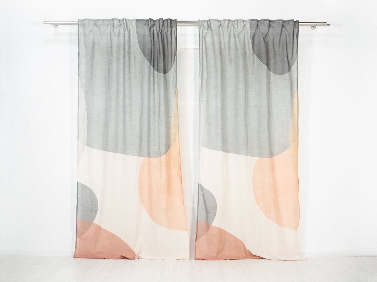 Visillo translúcido estampado. Protege la intimidad de la habitación y deja pasar la luz. Confeccionado con cinta smart tape multifunción que se adapta a cualquier sistema de barra de cortina (riel, ollados o pasabarras). No destiñe, buena resistencia de los colores a la luz del sol. El visillo se vende por unidad. Producto diseñado y fabricado íntegramente en España. Etiqueta ecológica OEKO-TEX