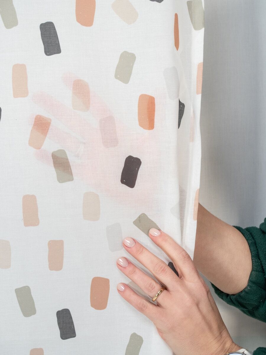 Visillo translúcido estampado. Protege la intimidad de la habitación y deja pasar la luz. Confeccionado con cinta smart tape multifunción que se adapta a cualquier sistema de barra de cortina (riel, ollados o pasabarras). No destiñe, buena resistencia de los colores a la luz del sol. El visillo se vende por unidad. Producto diseñado y fabricado íntegramente en España. Etiqueta ecológica OEKO-TEX