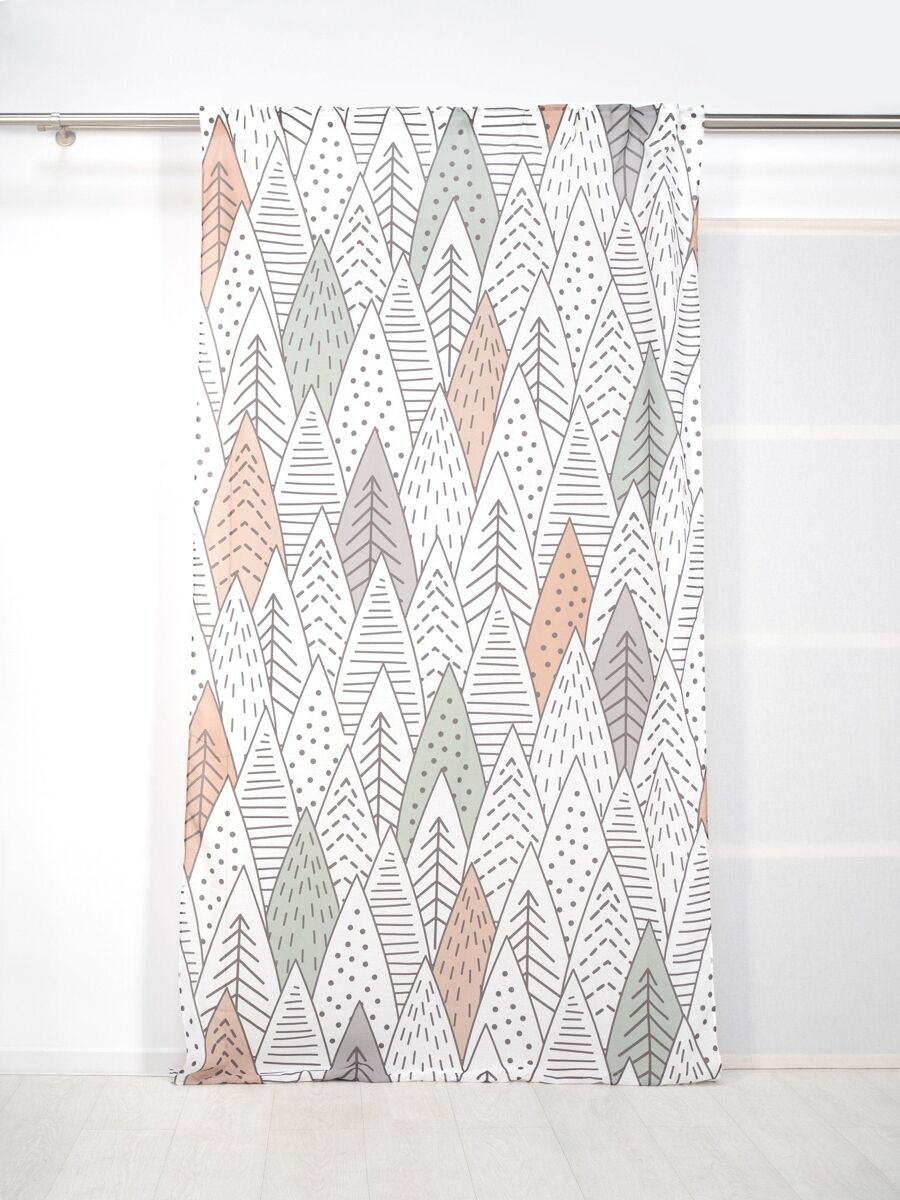 Visillo translúcido Montaña Scandi con motivo infantil Montaña - Blanco - 140x260