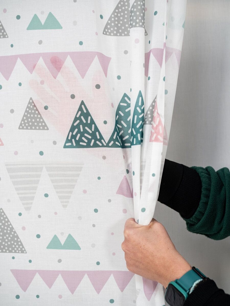 Visillo translúcido estampado. Protege la intimidad de la habitación y deja pasar la luz. Confeccionado con cinta smart tape multifunción que se adapta a cualquier sistema de barra de cortina (riel, ollados o pasabarras). No destiñe, buena resistencia de los colores a la luz del sol. El visillo se vende por unidad. Producto diseñado y fabricado íntegramente en España. Etiqueta ecológica OEKO-TEX