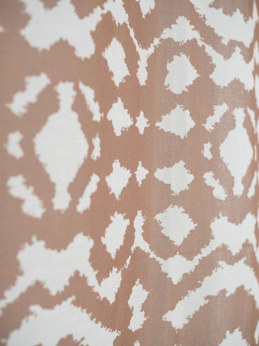Visillo translúcido estampado. Protege la intimidad de la habitación y deja pasar la luz. Confeccionado con cinta smart tape multifunción que se adapta a cualquier sistema de barra de cortina (riel, ollados o pasabarras). No destiñe, buena resistencia de los colores a la luz del sol. El visillo se vende por unidad. Producto diseñado y fabricado íntegramente en España. Etiqueta ecológica OEKO-TEX