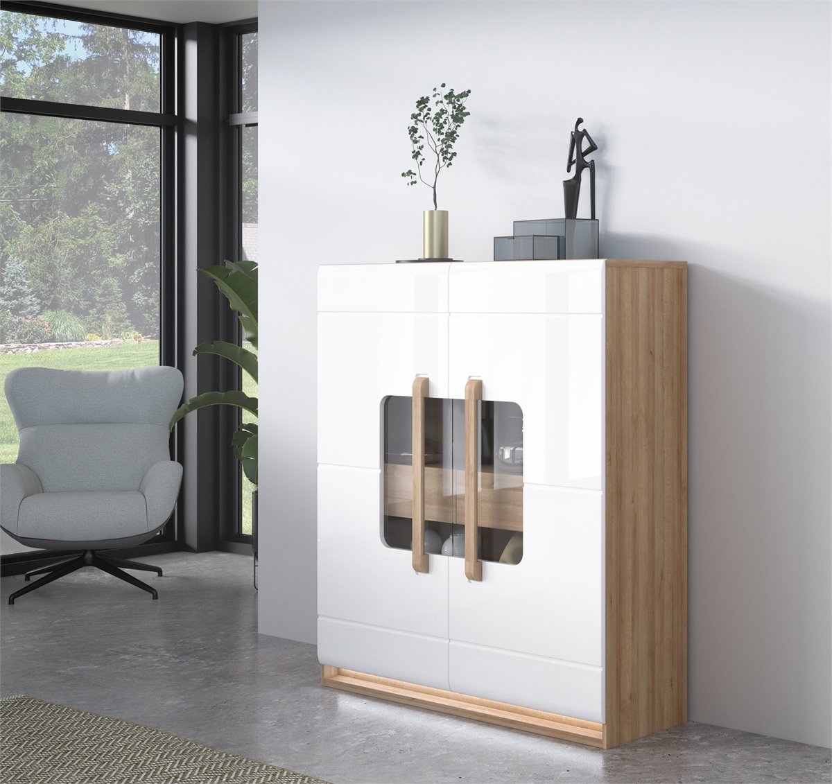 Sé la envidia de todas tus visitas con la vitrina MONTREAL. Con un espectacular diseño vanguardista, esta vitrina en negro brillante y roble, es idónea para lucir en ella tus objetos más preciados. Sus iluminadores Led con destellos verdes en el zócalo, harán de esta vitrina el centro de todas las miradas. El sistema de cierre soft garantiza que todo lo que guardes en ella se mantendrá a salvo de portazos involuntarios. Lo que guardes dentro formará parte de la decoración de tu salón.