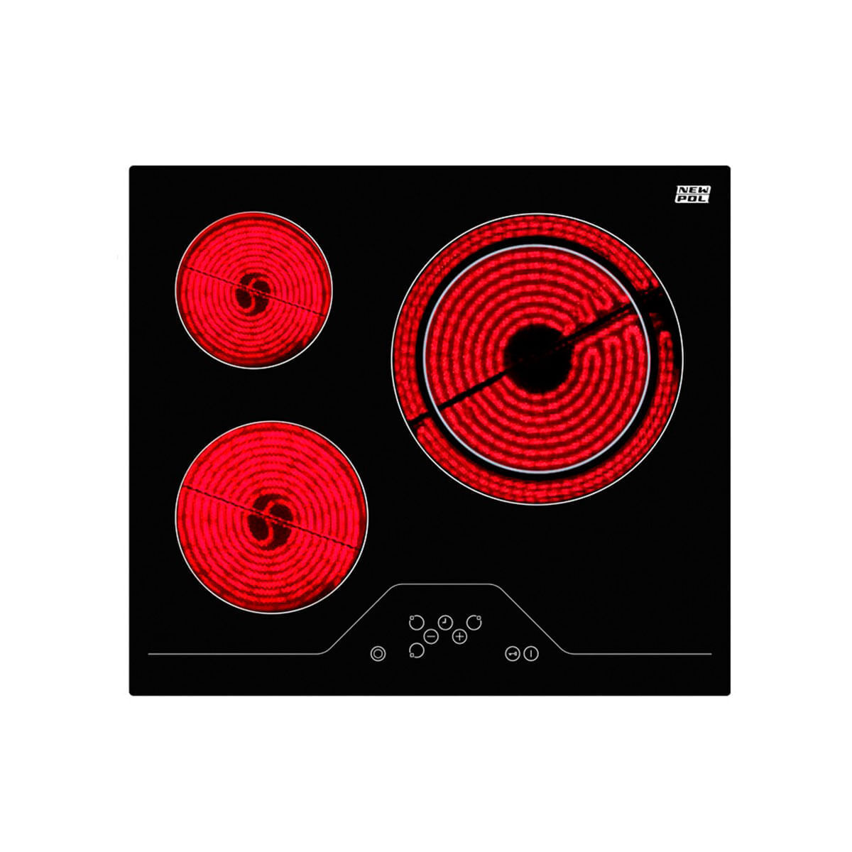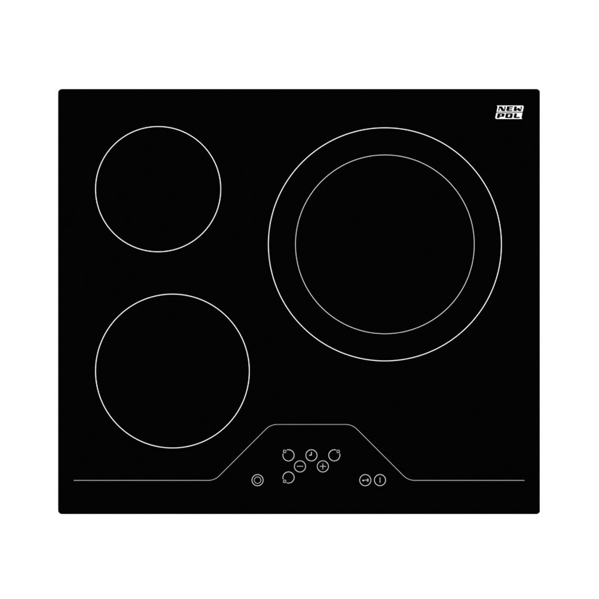 ¿Buscas una vitrocerámica nueva para tu cocina? La placa vitrocerámica NWVT3Z de New Pol podría ser una gran opción para tener en cuenta. Dispone de 3 zonas con perfiles biselados y panel de control Touch Control, uso táctil. Cada zona tiene diferentes potencias, adaptándose al tamaño de la sartén. Esta placa tiene un sistema de cocción por resistencias eléctricas de rápida respuesta. Para mayor seguridad durante su uso o para niños, incluye un bloqueo de seguridad. ¡Consigue esta estupenda placa vitrocerámica de New Pol ahora a un precio irresistible en Embargosalobestia!