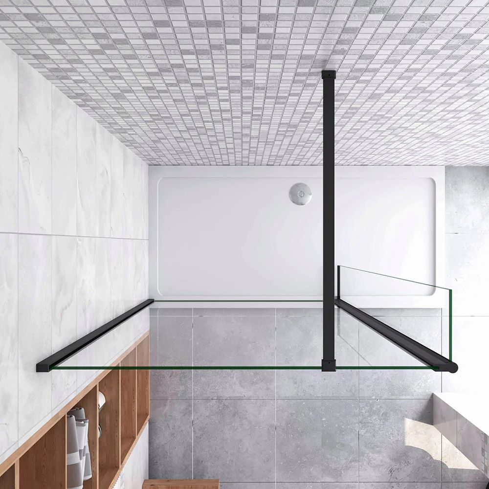 - La mampara va montado a la pared mediante perfil de aluminio. Equipada la barra estabilizadora para fijarla.