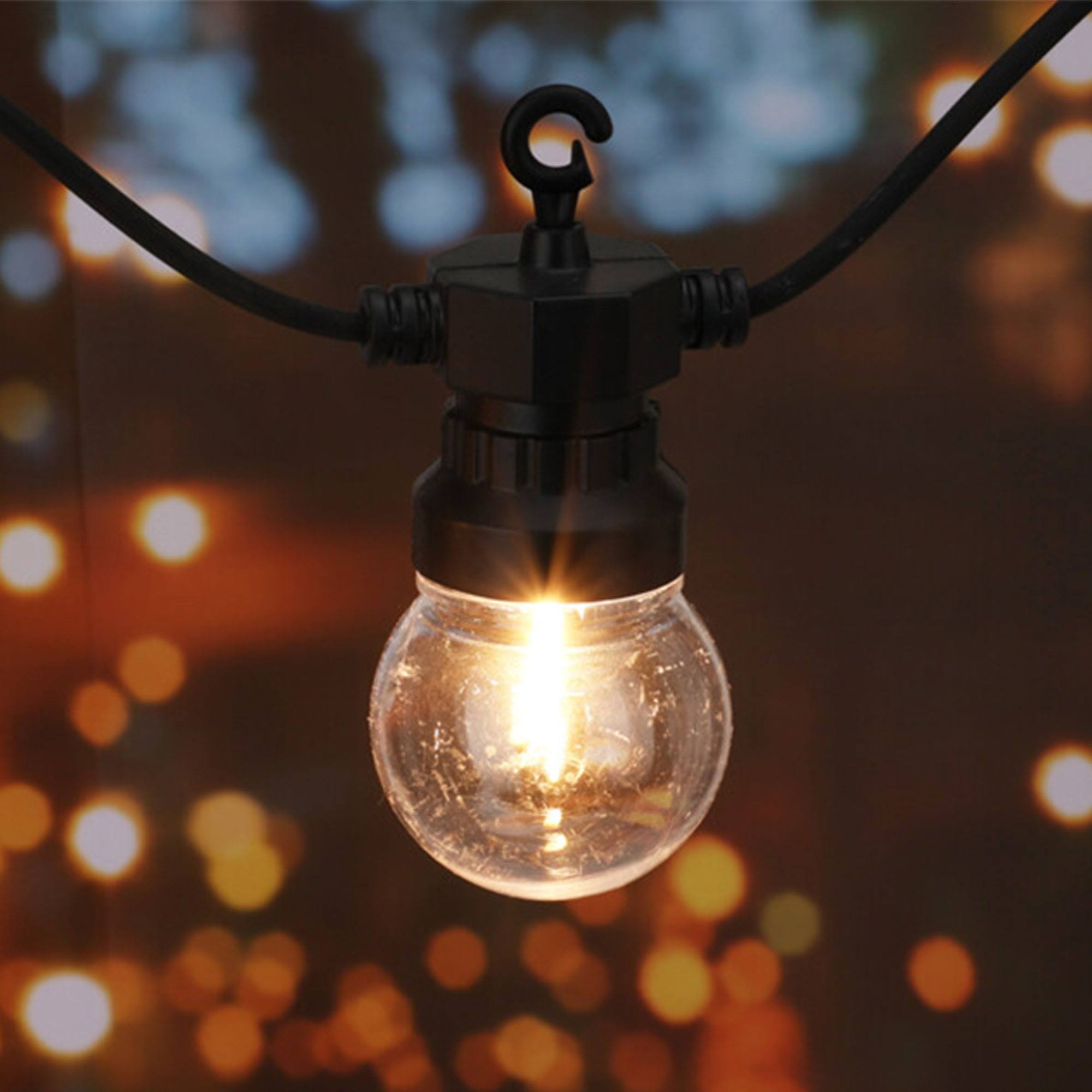 Embellece tu casa con esta hermosa guirnalda de luz de 20 bolas G50, fabricada con materiales de PVC, cobre, ABS, PET y caucho.
