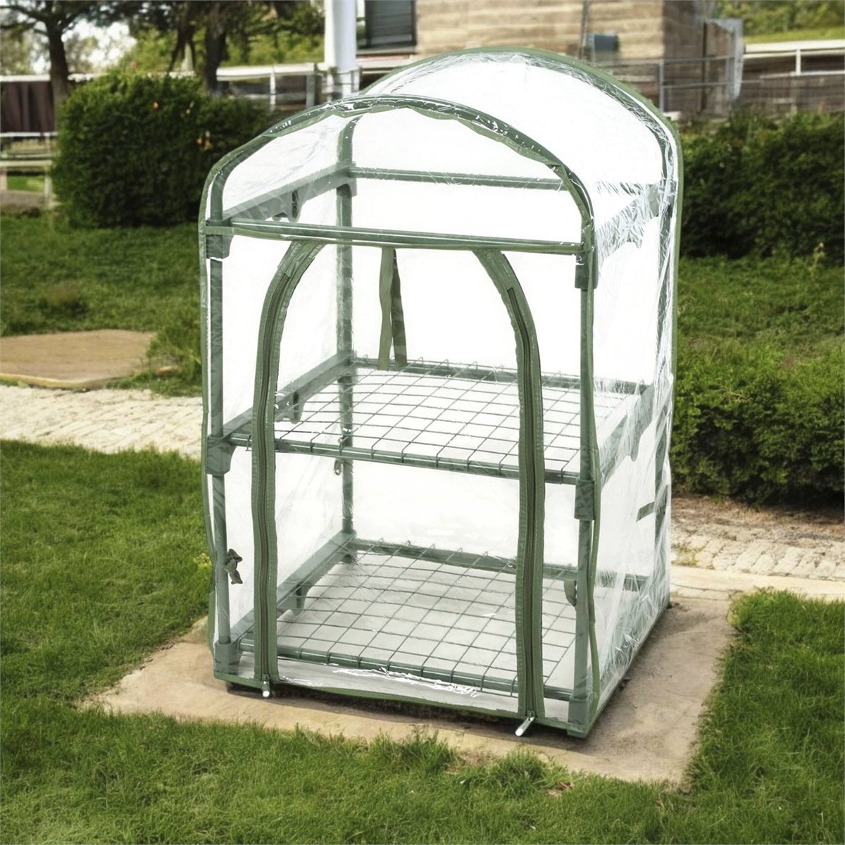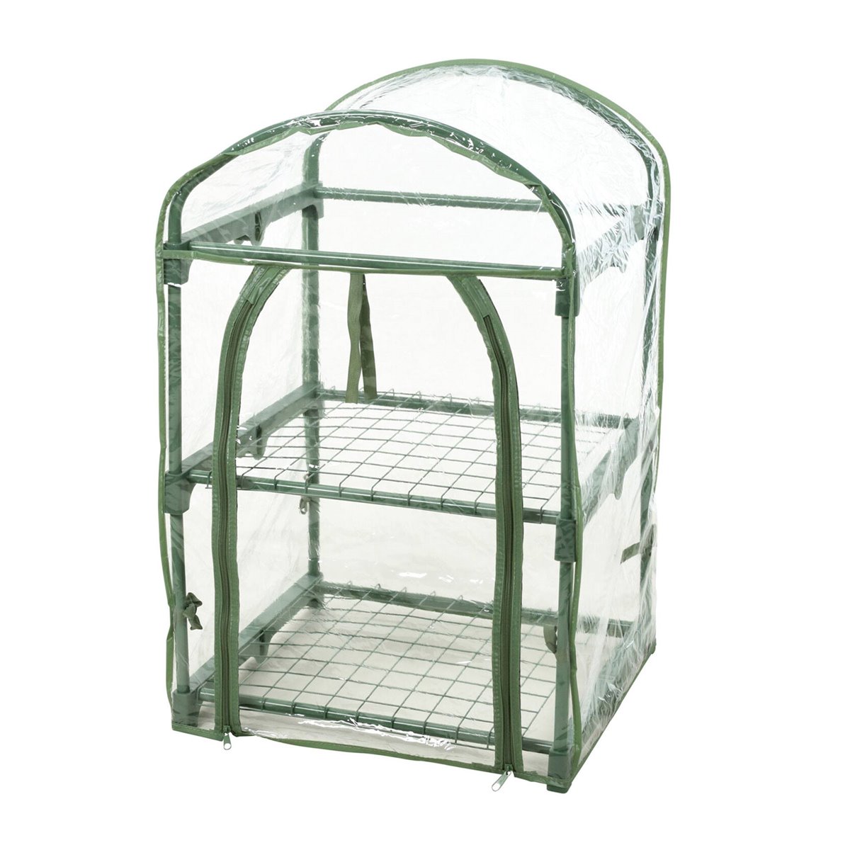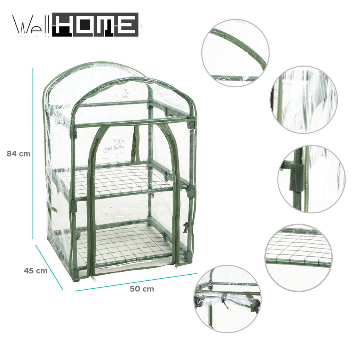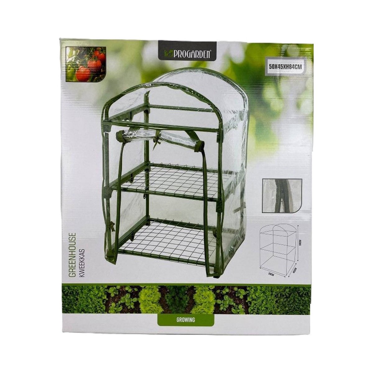 Invernadero de 2 niveles de tamaño 50x45xH84cm, con marco de metal (16x0.3mm) con recubrimiento de polvo en color verde nuevo.