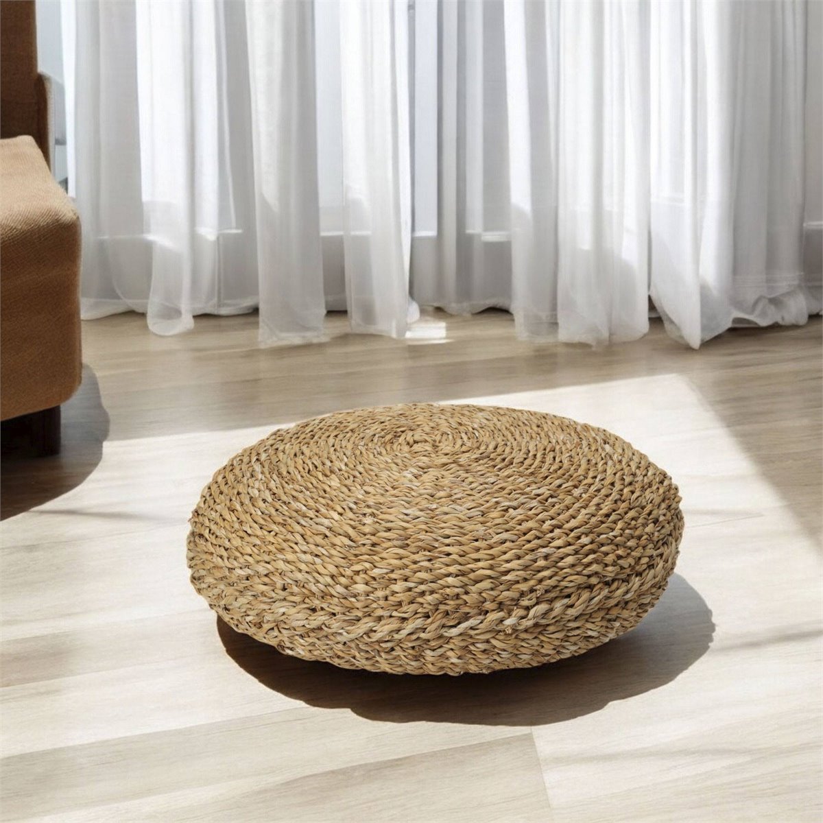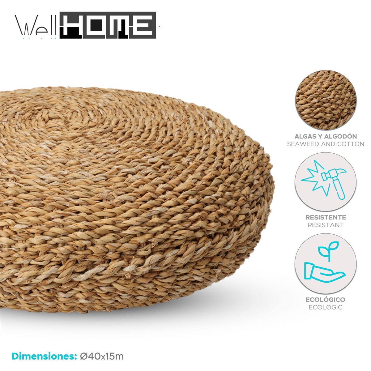 Sumérgete en un oasis de confort con nuestro puf redondo elaborado con algas marinas y algodón.