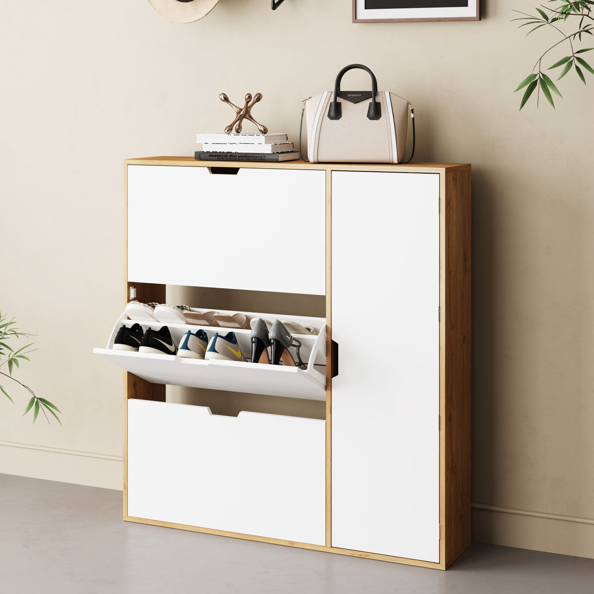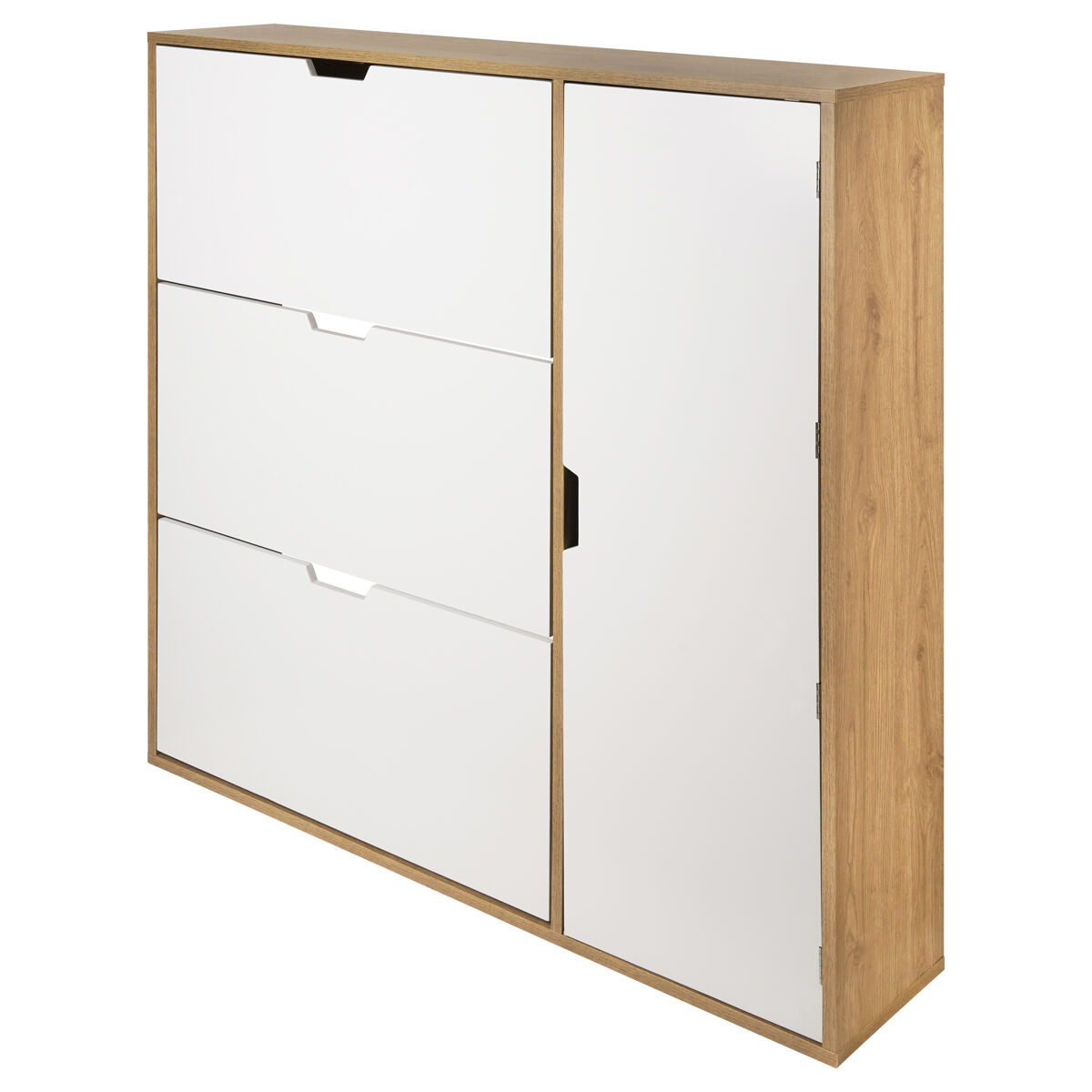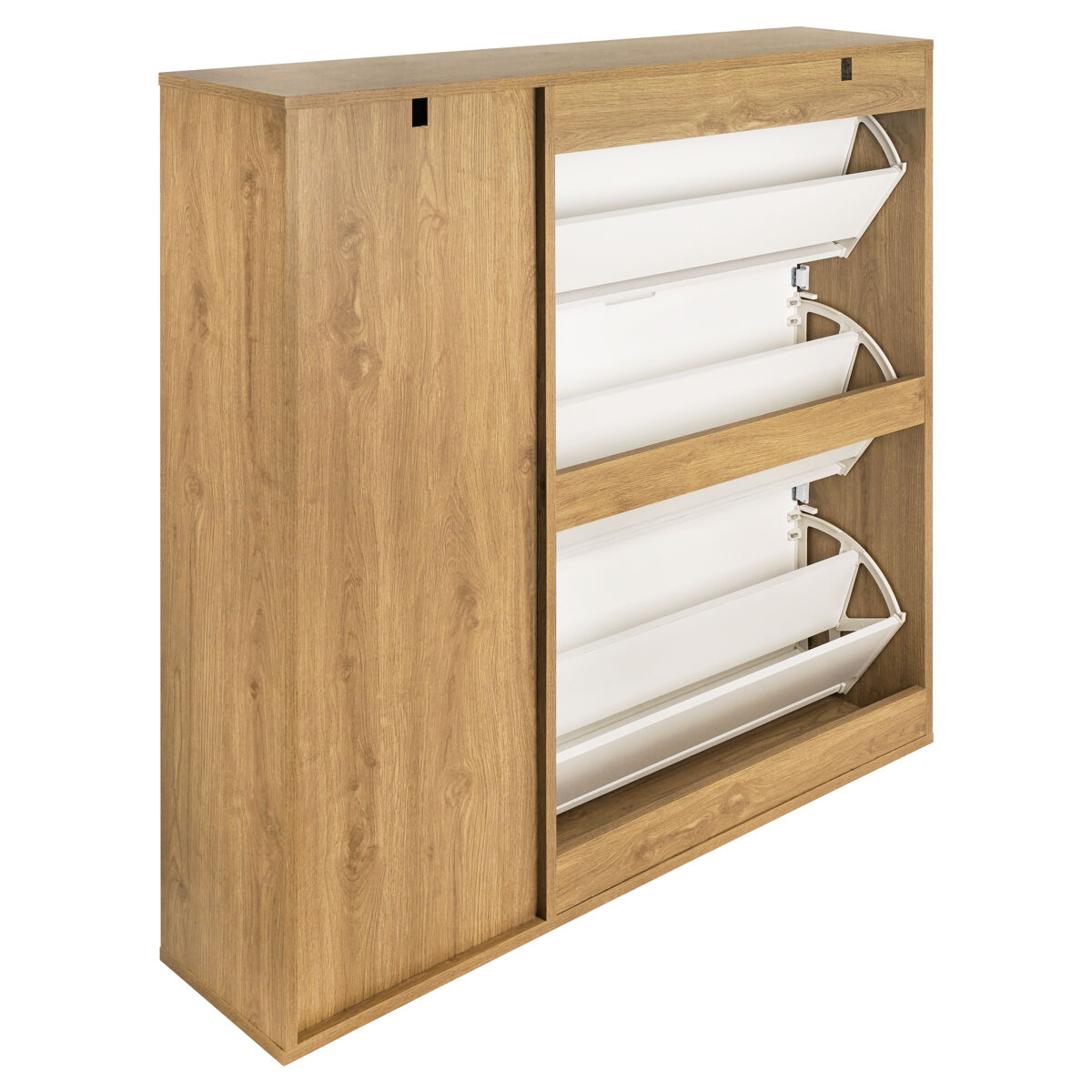 Presentamos el Zapatero MONTBLANC, perfectamente diseñado con una combinación de colores roble y blanco. Sus dimensiones son 112 cm de alto, 105 cm de ancho y 23.5 cm de fondo, ofreciendo una solución elegante y compacta para el almacenamiento de zapatos. Su diseño estilizado se adapta a cualquier decoración moderna o clásica, maximizando el espacio sin sacrificar estilo. Ideal para pasillos, dormitorios o cualquier rincón de tu hogar, manteniendo tus zapatos accesibles y en orden.